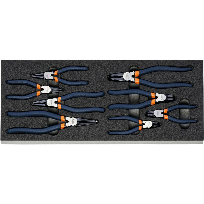 Esecuzione: Assortimenti di utensili in alloggiamenti sagomati in espanso rigido bicolore in PE. La struttura non porosa dell'espanso è resistente all'olio e impermeabile. Strato superiore color antracite, quello inferiore di contrasto grigio mette subito in evidenza gli utensili mancanti.Gli alloggiamenti in espanso rigido riempiono 1/4 (10 G × 8 G o 250 × 200 mm) o 1/2 (20 G × 8 G o 500 × 200 mm) della superficie utile dei cassetti. Per: Nuovi carrelli portautensili GARANT per officina con cassetti a estrazione totale e un passo nuovo da 20 G × 16 G o 500 × 400 mm (larghezza × profondità). Fornitura: Inserto in espanso rigido vuoto n. art. 952001 Dim. 954217: 1 pz.Pinza di precisione GARANT per anelli sicurezza n. art. 719770 Dim. J0;