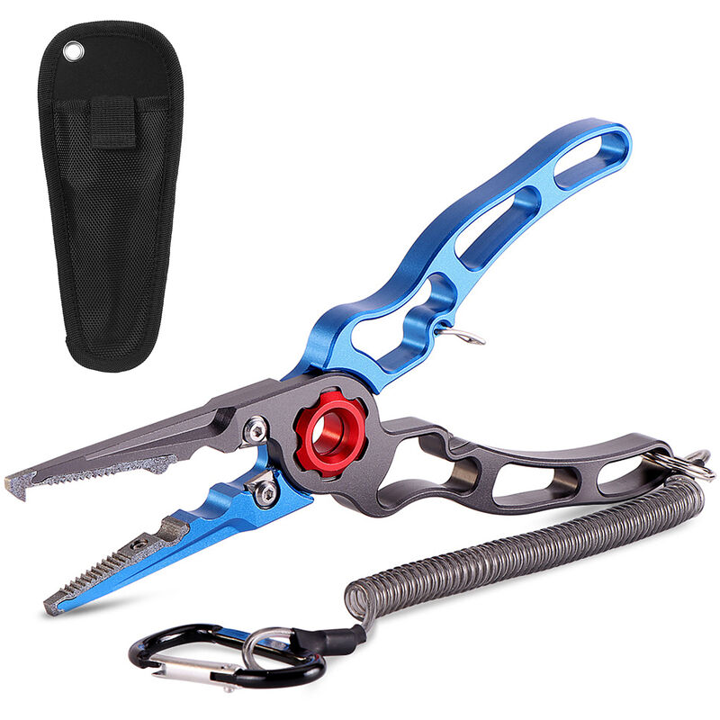 Multifunzionale, può essere utilizzato per rimuovere il gancio, tagliare il filo, estrarre l'anello d'acciaio, afferrare saldamente i pesci, ecc. Il materiale in lega di alluminio è solido, durevole e resistente alla corrosione, ottimo sia per ambienti d'acqua dolce che salata. Pratici strumenti da pesca da aggiungere alla tua attrezzatura da pesca. Caratteristiche: Può tagliare qualsiasi tipo di filo da pesca ed estrarre l'anello d'acciaio, afferrare il pesce, ecc. Realizzato in materiale di alluminio di qualità, nessuna ruggine, nessuna corrosione, ideale per acqua dolce e salata. Ganascia rivestita in titanio con gancio per una facile rimozione degli anelli da un'esca o da un amo. Le taglierine in acciaio al tungsteno super affilate rendono estremamente facile tagliare i fili intrecciati più resistenti. I cordini regolabili e la custodia prevengono la perdita accidentale e sono sempre facili da raggiungere. Manici sagomati per una presa sicura e confortevole. Super facile da usare