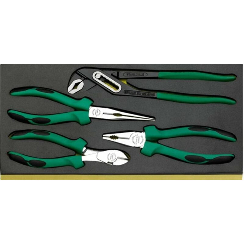 STAHLWILLE - SET PINZE+TRONCHESI Assortimento di utensili integrato nel sistema di scatole da costruzione con inserti per utensili Tool Control System (TCS) - sicurezza Nel sistema Tool Control gli utensili si trovano in inserti di sicurezza resistenti agli agenti chimici con tagli tridimensionali ad alta precisione. 175 x 350 x 35 mm · 4 pezzi