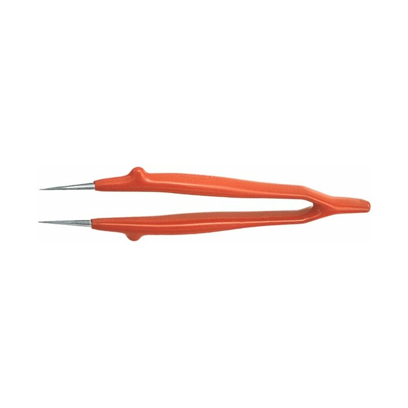 In acciaio con punte sottili, manici a doppio isolamento. In acciaio speciale, esecuzione nichelata. Dati tecnici Esecuzione a punta Lunghezza mm 130 Tipo di prodotto Pinzetta