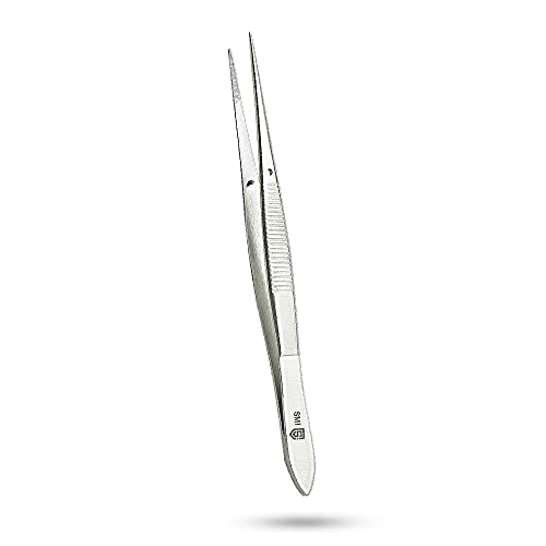 SMI - 12 cm Pinzette industriali di precisione, Punta dritte seghettata, Pinzette professionali, Pinzette in Acciaio Inox, Multiuso, Modellismo Fai da te
