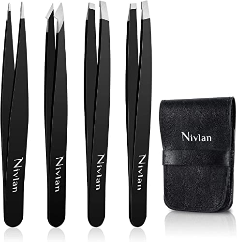 Pinzette per Sopracciglia, Nivlan 4 Pcs Pinzetta Sopracciglia Professionale Acciaio inox per Depilazione per Pelle Incarnite, Attrezzo Giornaliero di Bellezza per Uomini e Donne, Tweezers