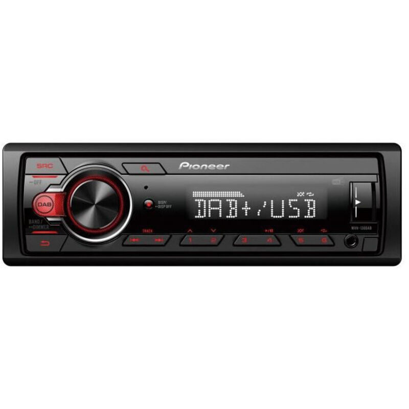 Pioneer MVH-130DAB. Colore del prodotto: Nero, Rosso, Grandezza DIN: 1 DIN, Potenza in uscita: 200 W. Formati audio supportati: AAC, FLAC, MP3, WAV, WMA. Tipo di display: LCD, Lingue OSD: Tedesca, Inglese, Francese. Bande del sintonizzatore: DAB, DAB+ Prestazione Colore del prodotto Nero, Rosso Grandezza DIN 1 DIN Potenza in uscita 200 W Alimentazione massima per canale 50 W Sistema operativo mobile supportato Android Controllo del volume Manopola Particolarità RDS PTY Multimediale Riproduzione MP3 Sì Formati audio supportati AAC, FLAC, MP3, WAV, WMA Display Display incorporato Sì Tipo di display LCD Illuminazione display Sì Numero di lingue OSD 3 Lingue OSD Tedesca, Inglese, Francese Connettività Porta USB Sì Ingresso Aux Sì Pre out port Sì Radio Bande del sintonizzatore DAB, DAB+ Sintonizzatore RDS incluso Sì