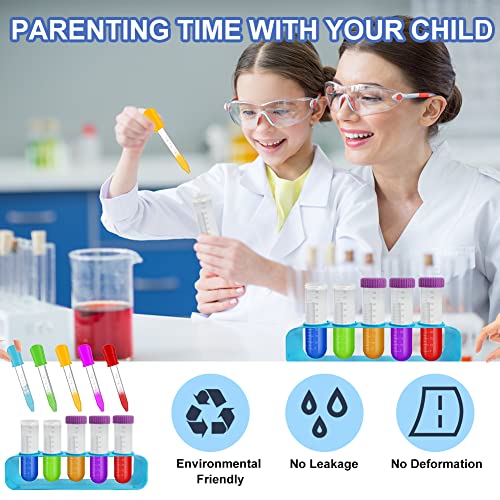 Starter Science Test Tube Set Regalo: Super divertente kit di scienza per i vostri bambini! Questo contagocce pippets e provette per pipette con coperchi sono colorati e divertenti, facili da attirare l'attenzione dei bambini e sicuri da giocare con, grande per le attività creative dei bambini, godersi i divertenti esperimenti scientifici precoci.