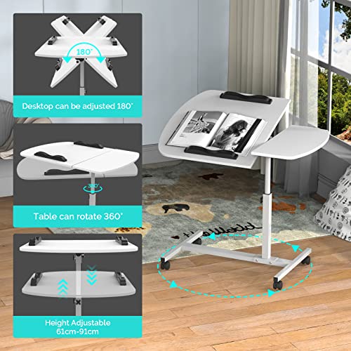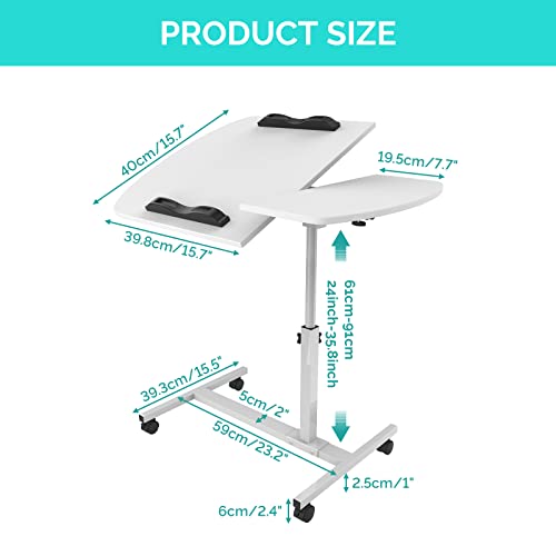 PIPIPOXER 60 x 40 cm, tavolo per computer portatile, regolabile in altezza, scrivania mobile con 2 barre di arresto e 4 ruote, tavolino girevole a 360, tavolino per divano, bianco