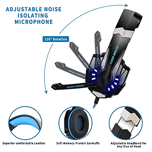 PIPRE Cuffie da gioco stereo, per PS4, PC, controller Xbox One, cuffie da gaming antirumore con microfono, paraorecchie morbide, luce LED, basso surround