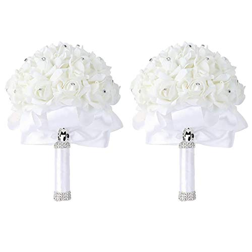 Occasione: Questi fiori di rosa bianca si abbinano alla modanatura dei tuoi abiti da sposa. I bouquet da sposa fatti a mano per le spose, le sottigliezze sono piene di bellezza. Aspetto discreto ed elegante! La scelta migliore per scattare foto. È anche una buona scelta per San Valentino, proposta, fidanzamento, compleanno e regalo speciale per tua moglie, fidanzata, madre!