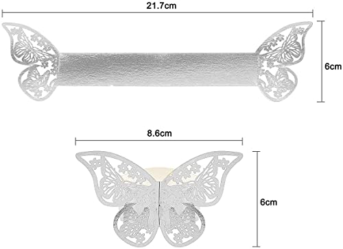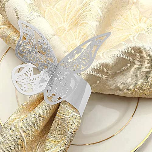 PIQIUQIU Portatovaglioli da 50 Pezzi, Fibbie per tovaglioli di Carta a Farfalla scavate, Anello portatovaglioli Lucido Riflettente d'Argento