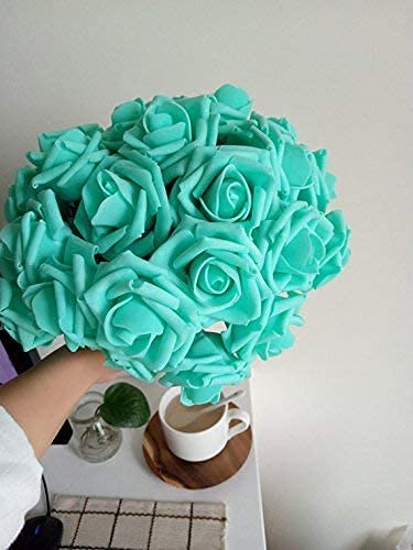 PIQIUQIU 25 Rose Artificiali in gommapiuma, Fiori Artificiali, per Matrimonio, Bouquet da Sposa, Decorazione per la casa 8cm (Tiffany)