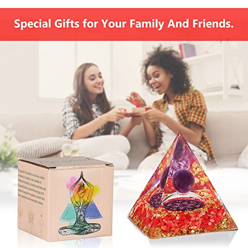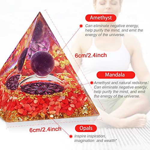Piramide di Orgonite 7 Chakra Pyramid - Ametista Mandala Pietra Rossa Naturale Piramide Energetica Significa Salute Felicità Elimina energia Negativa Piramide di Cristallo per Meditazione Yoga -6cm