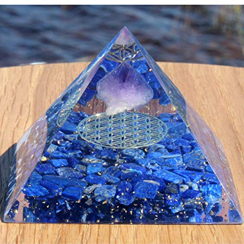 Piramide di orgonite fatta a mano fiore della vita abbondanza con ametista e cristalli lapislazzuli