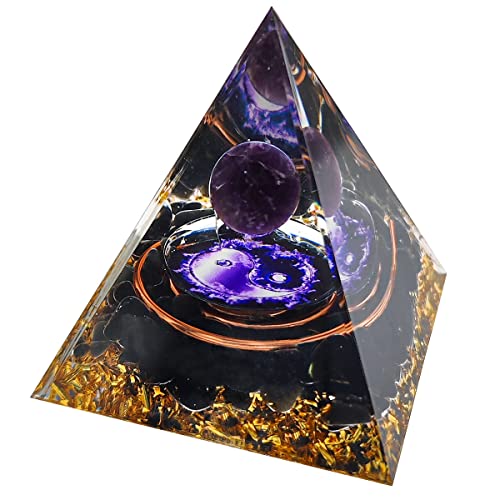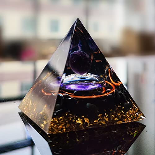 Piramide in Orgonite con Pietra di Ametista e Ossidiana del Bilanciamento del Chakra del Quarzo Cristallo di Guarigione di Rame Reiki Guarigione di Cristallo dell'Orgonita