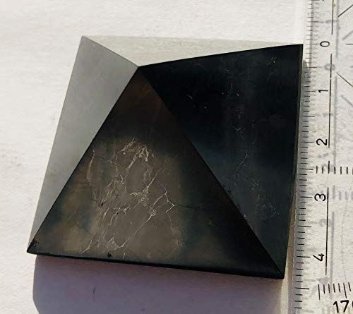 Piramide di shungite delle seguenti dimensioni: pietra curativa di shungite a forma di piramide da 4 x 4 cm.