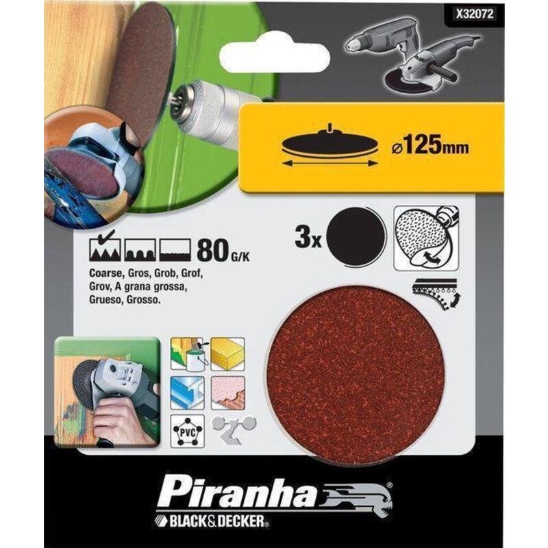 PIRANHA - DISCHI ABRASIVI GRANA 80 3PZ Il disco abrasivo autoadesivo Piranha 80K è adatto per la maggior parte delle applicazioni, come la levigatura di legno, vernice e vernice, gesso, metallo e plastica. Extra forte per una maggiore resistenza, una maggiore durata e una finitura superiore.