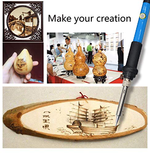 【Creazione artistica】 Il kit per la combustione del legno perfetto non solo ti consente di creare su tutti i tipi di legno o pelle, ma è anche molto utile per vari disegni come trasferimento di immagini, taglio della cassaforma, saldatura, stampa a caldo e goffratura tessile.