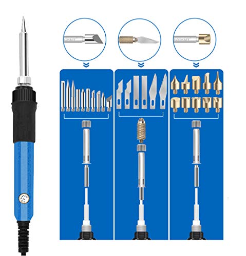 Kit Pirografia Legno 69 Pezzi, Kit Saldatura Elettrica 60W con Custodia per il trasporto Portatile, Temperatura Regolabile, Attrezzi Incisione Professionale per Cuoio, Sughero