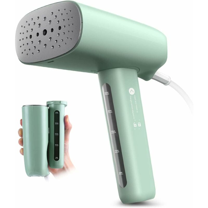 TI REGALA ELEGANZA SENZA RUGHE - Il piroscafo portatile rimuove efficacemente le rughe con vapore continuo. L'ugello a 5 fori e il vapore ad alta temperatura a 120°C penetrano completamente nell'area del tessuto, il vapore a 18 G/MIN è potente e uniforme, e anche le pieghe più ostinate possono essere rimosse.L'alta temperatura uccide anche il 99% dei germi e igienizza i vestiti.COMPATTO E ULTRA PORTATILE - Il design staccabile rende più pratico il trasporto e lo stoccaggio.Il piroscafo principale ha solo le dimensioni di un palmo.Le sue dimensioni compatte e 0,8 kg di peso lo rendono un compagno di viaggio ideale.Nota: questo prodotto è dotato di spine standard europee (due spine rotonde).RISCALDAMENTO RAPIDO ED ENERGIA POTENTE - Questo piroscafo portatile è dotato di un ugello ergonomico e di una tecnologia di riscaldamento ultraveloce che si riscalda in meno di 45 secondi Aspetta di meno, passa più tempo a goderti la vita. Il serbatoio dell'acqua da 800 W e 110 ml offre fino a 8