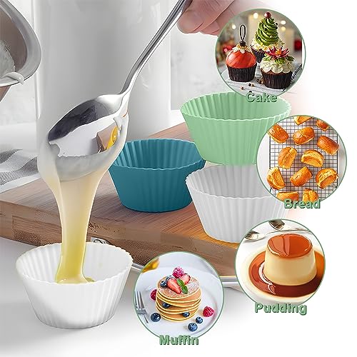 【Silicone alimentare】Stampi per muffin sono realizzati in silicone alimentare di alta qualità, senza BPA, resistente alle alte temperature, consistenza morbida, elastica e non facile da deformare, facile da togliere dallo stampo e facile da pulire dopo l'uso, riutilizzabile, non più tazze di carta usa e getta, evitando gli sprechi, ideale per panetteria, muffin, bento box, tazze per snack.