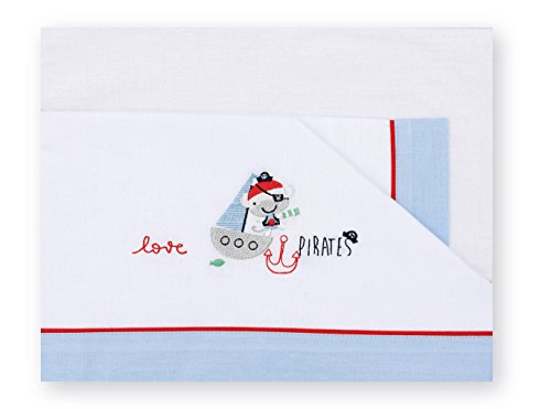Pirulos 00113313 - Lenzuola, motivo Pirate, 50 x 80 cm, colore: bianco/blu