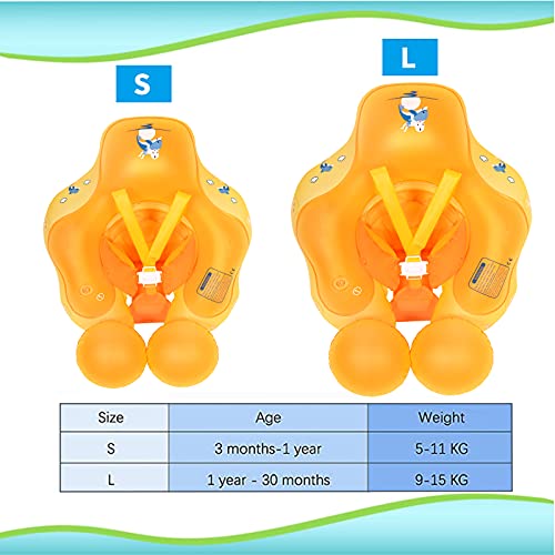 Piscina Salvagente per Bambini,Salvagente Neonato,Salvagente Bambini con Mutandina Regolabile Doppio Airbag Con Pompa 6 a 36 Mesi di Bambin(3-36Mesi,Arancia)