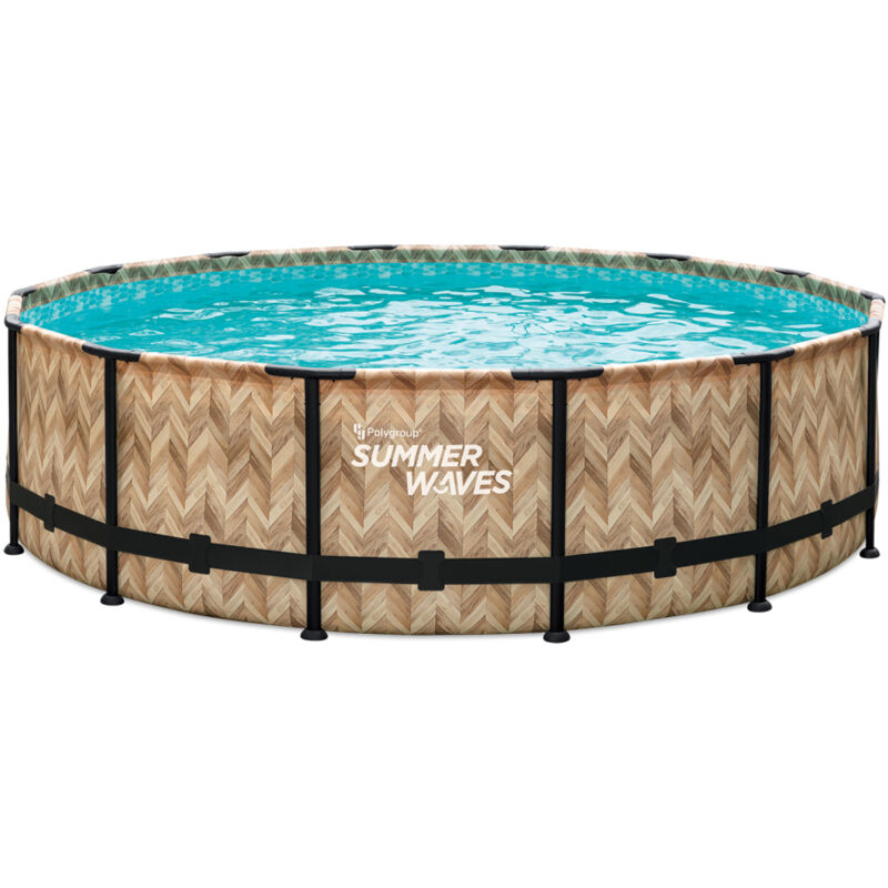 Una piscina Summer Waves Elite Frame 427 x 107 cm nel colore rovere chiaro sarà una bellissima aggiunta al tuo giardino. L'esterno della piscina Elite Frame ha un motivo in legno marrone, anche i telai sono marroni. La piscina fuori terra è facile e veloce da installare e ha una struttura robusta. Oltre alla bellissima piscina dove tutti hanno spazio per rinfrescarsi e divertirsi in acqua, sono inclusi anche gli accessori. Si tratta di un set completo per la manutenzione di una piscina, comprendente una pompa filtro, una cartuccia filtrante, un set di manutenzione e un telo di fondo e di copertura. La piscina ha una dimensione generosa di 427 x 107 cm, nonostante la sua altezza è facile entrare e uscire con i gradini forniti in dotazione. Contenuto: Dimensioni della piscina: 427 x 107 cm Capacità dell'acqua: 13.294 litri (90%). riempito) Pronto per l'acqua in 45 minuti Pompa filtro a cartuccia interna con stampa a mosaico 3.785 litri all'ora;