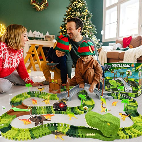 Pista Macchinine Dinosauri Giocattolo Per Bambini Giochi Bambini 2 3 4 Anni Con 14 Dinosauro Giocattolo e LED Cars Macchinine Per Regalo Bambino bambina 4 5 6 Anni e Halloween Regali Di Natale