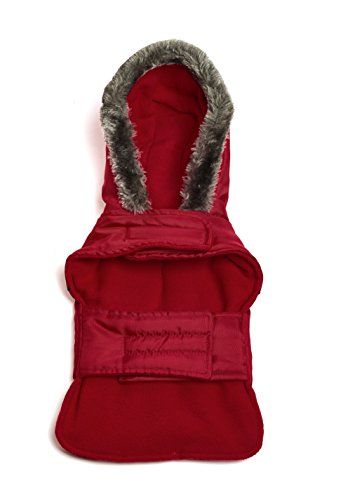 Pistacchio Pet, elegante cappotto trapuntato per cani in pile doppio strato con cappuccio con finitura in pelliccia sintetica