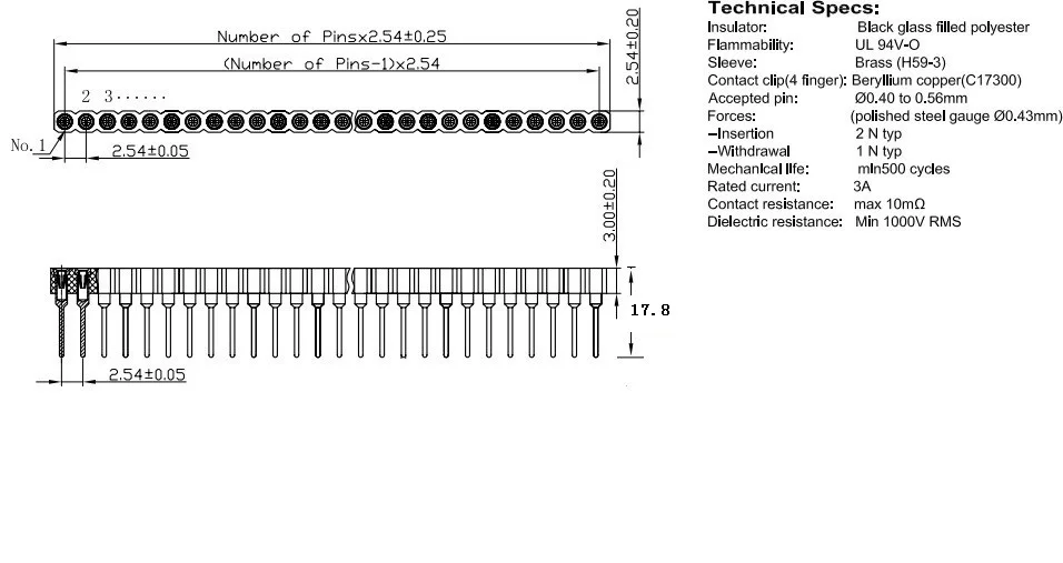 4 pcs 2.54 mm Pitch 0.100" PCB Female Header Sockets Round Receptacle Contact Squared Pins SIP Strip 17.8mm Height Through Holes