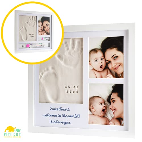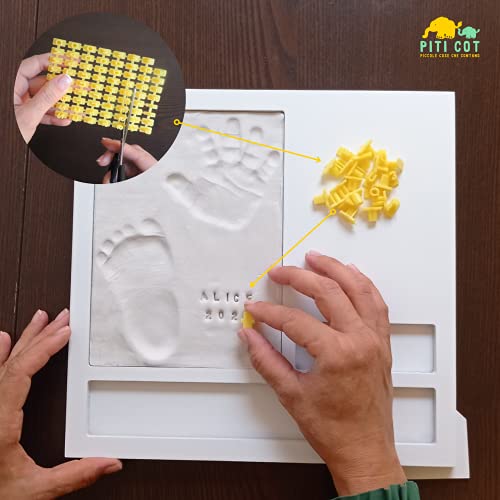 PITI COT Cornice Impronte Neonato | Regalo Battesimo Maschio Femmina e Nascita Bimbo | Calco Mani e Piedi in Argilla| Kit Lettere Numeri e Porta Braccialetti | Decorazioni Cameretta