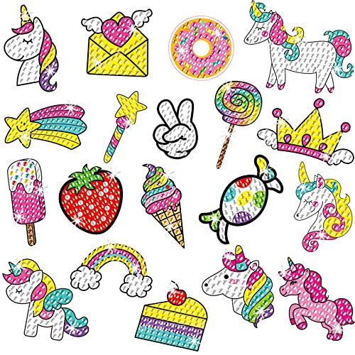 Pittura Diamante Adesivo per Bambini,19 Pezzi Unicorno DIY Diamond Painting Adesivo,DIY Diamante Adesivo Kit, Pittura con Diamanti per Bambini Principianti Adulti