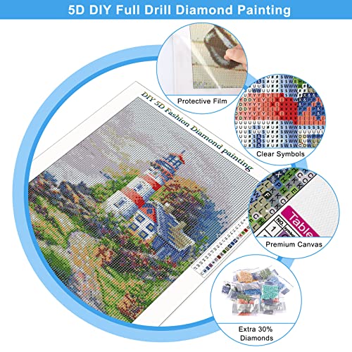 Pittura Diamante 5d fai da te per Adulti, Diamond Painting Kit Completo Diamond Painting, DIY Diamant Painting, Pittura Diamante Decorazione della Parete di Casa 30x40cm Faro