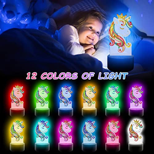 Kit di Pittura Diamante 3D per Bambina di 3-9 Anni,Unicorno Giocattolo Luce Notturna per Bambina,Regalo Ragazza 5 6 7 8 9 10 Anni Kit Unicorno,Ragazza Compleanno Natale Mosaico Unicorno Lampada