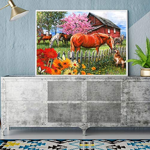 Pittura Diamante Quadrato 5D Completo Fai Da Te Pittura Diamanti Quadrati Cristallo Arte Cavalli Strass Ricamo Punto Croce kit Fornitura Arti Artigianali Tela Adesivi Arredo Casa 40x30 cm