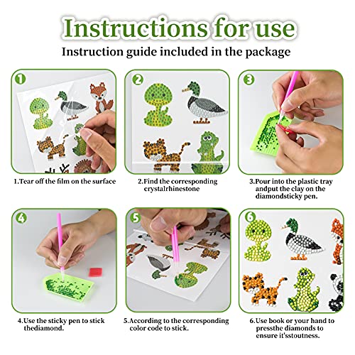 Kit per pittura con diamanti 5D per bambini, fai da te, per pittura con animali, per bambini e adulti