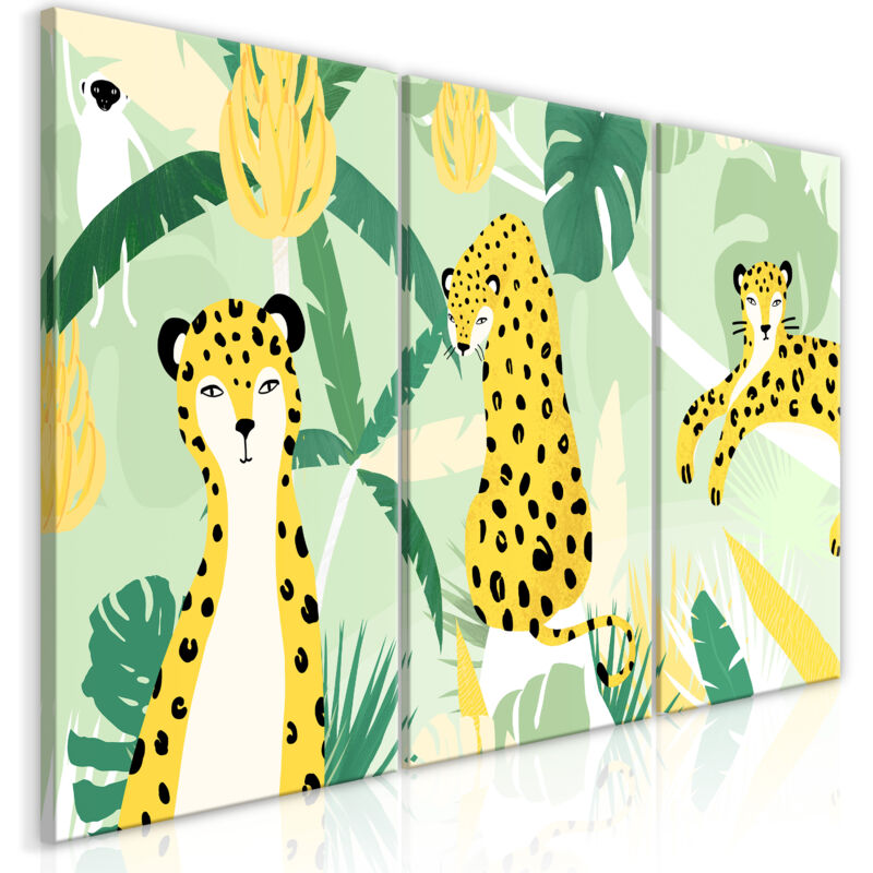 Un dipinto su tela come decorazione impressionante. Dipinti unici con motivi estetici sono il complemento perfetto per una disposizione elegante. Con un po' di creatività, possono essere facilmente abbinati a qualsiasi stile di arredamento. Il quadro "Pittura - Ghepardi nella giungla (3 parti)" è un elemento decorativo unico e quasi universale. Piacerà a tutti coloro che cercano decorazioni originali per completare la propria sistemazione. Posizionalo nel tuo interno e vedrai che è completo e non avrai più bisogno di altre aggiunte. Non devi preoccuparti della qualità e dell'aspetto della tua decorazione. I dipinti su tela disponibili in offerta riproducono fedelmente i dettagli. La risoluzione di stampa opportunamente regolata garantisce l'intensità dei colori e la nitidezza del motivo presentato. Questi tipi di prodotti sono la soluzione perfetta se ti lamenti ancora dello spazio vuoto sul muro e ti chiedi come riempirlo. È un elemento decorativo elegante che rende gli interni