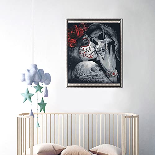 Kit per pittura a mosaico 5D, kit fai da te per adulti, kit per pittura a mosaico con teschio, strass di cristallo ricamato, quadri fai da te per decorazione da parete domestica (30 x 40 cm)
