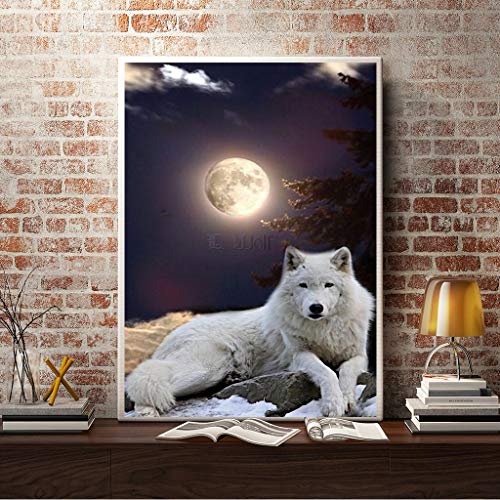 Kit per pittura a mosaico con diamanti sintetici, pittura a numeri per adultikit per la pittura in 5d con diamanti lupo al chiaro di luna diamond painting animali decorazioni pareti 30x40cm