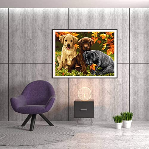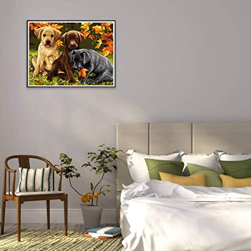 Pittura fai da te con numeri per adulti e bambini, ABEUTY cani e foglia d'acero, 40,6 x 50,8 cm, pittura numerica artistica (cani, cornice in legno)