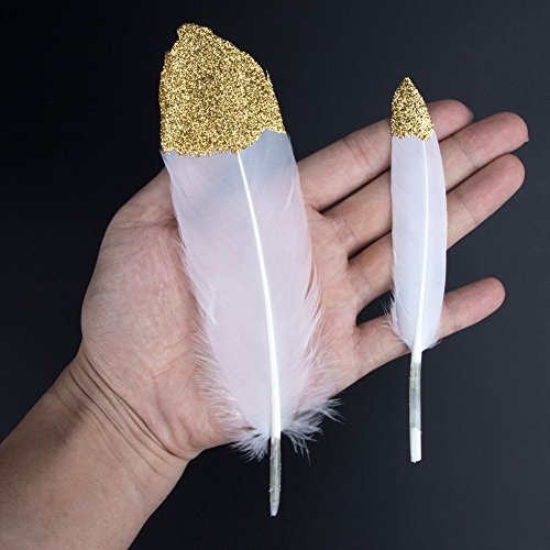 40 pezzi piume bianche e oro: il pacchetto contiene piume artigianali 40pcs, quantità sufficiente per soddisfare tutte le vostre esigenze!
