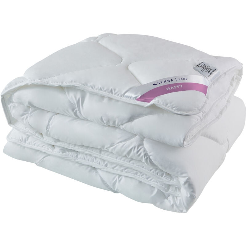 Piumino anallergico, Collezione: Happy, Misura: 200x220cm, Stagionalità: estate, Colore: bianco, Rivestimento: 100% poliestere (microfibra morbida e leggera), Imbottitura: 100% soffice fibra tubolare di poliestere siliconata a spirale (HCS), Peso: 1000 g .