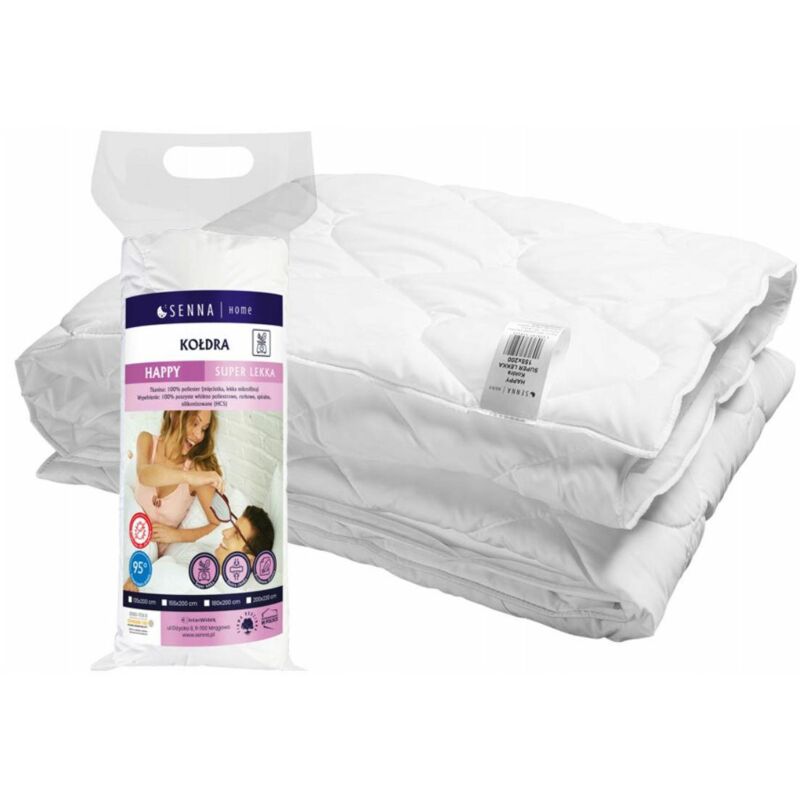 Piumino anallergico, Misura: 200x220 cm, Tolleranza dimensionale +/-3%, Collezione: Happy, Stagionalità: estate, Fodera: 100% poliestere (microfibra morbida e leggera), Imbottitura: 100% soffice fibra di poliestere tubolare a spirale siliconata (HCS), Peso: 600 g
