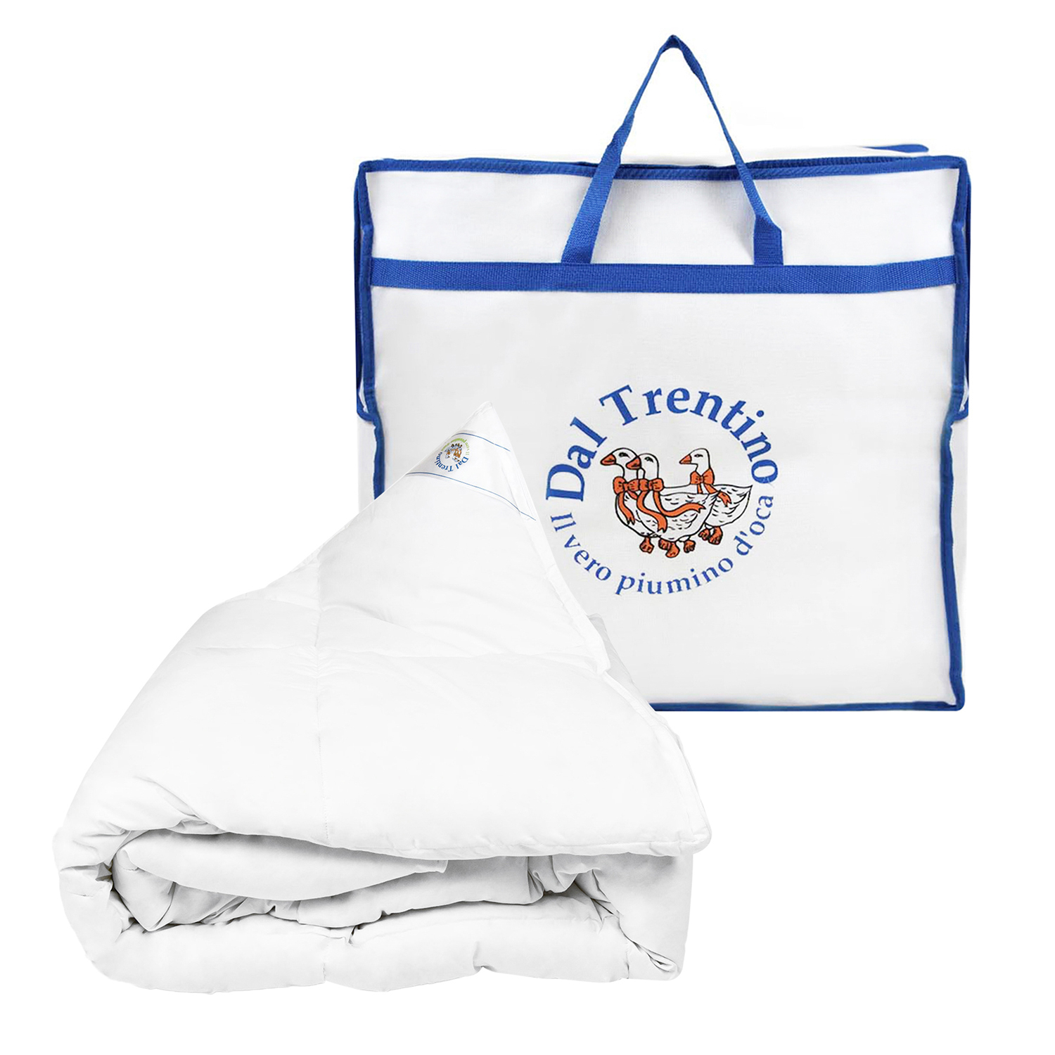 Daunex, azienda trentina con lunga tradizione nella produzione di piumini d'oca, garantisce prodotti Made in Italy di alta qualità per il migliore riposo. Il piumino della linea Cortina Warm è imbottito con 50% di piumino d'oca e 50% di piumette d'oca e si adatta ad ogni temperatura dell'ambiente rendendolo perfetto per ogni stagione. Il merito è garantito dall'unione di 3 caratteristiche: la coibenza, l'igroscopicità e la traspirabilità. Quest'ultima caratteristica rende il piumino d'oca anallergico poiché non attira gli acari della polvere che preferiscono ambienti molto più umidi. Per letti a una piazza, ha misura 155x200 cm. Lavabile in lavatrice a 40° con centrifuga delicata. Imbottitura: 250 gr/mq. Confezionato in una in una pratica borsa in tnt con cerniera e manici per tenerlo nell'armadio lontano dalla polvere.