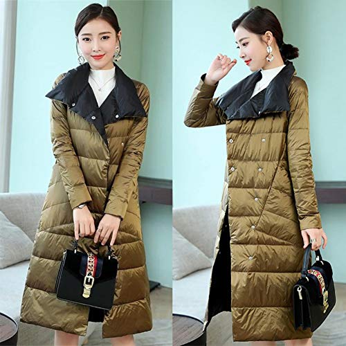 Piumino Lungo Donna Double Face Cappotto Invernale in Piumino D'Anatra Bianco con Collo Alto Parka Caldo Doppiopetto Capispalla Reversibile,BlackSilver,M