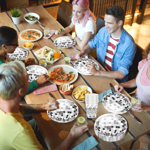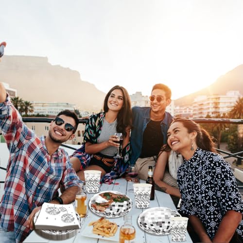 PIUMOJ Discoteca Festa Stoviglie, Piatti da Discoteca Compleanno,Stoviglie per Feste Discoteca,Piatti,Bicchieri,Tovaglioli, 70 Anni 80 Anni 90 Anni Forniture per Feste per addio al nubilato,20Ospiti