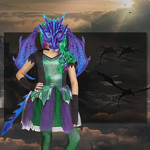 【Costumi di Halloween per bambini】 Il costume da drago per bambini include 1 maschera, 1 ali di drago, 1 coda. Misterioso e fantastico set di costumi da drago, i tuoi bambini si distingueranno sicuramente alla festa di Halloween.