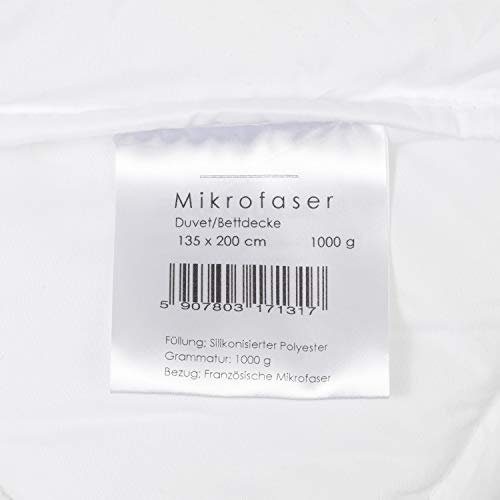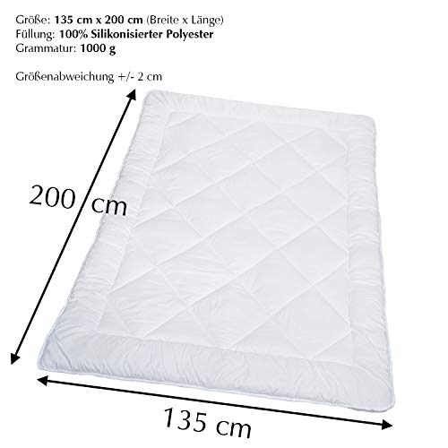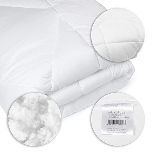 H&F - Piumone 135 x 200, adatto per le 4 stagioni, materiale della copertura del piumone: 100% microfibra, biancheria da letto anallergica con certificazione Oeko-TEX, imbottitura: 1000 g.