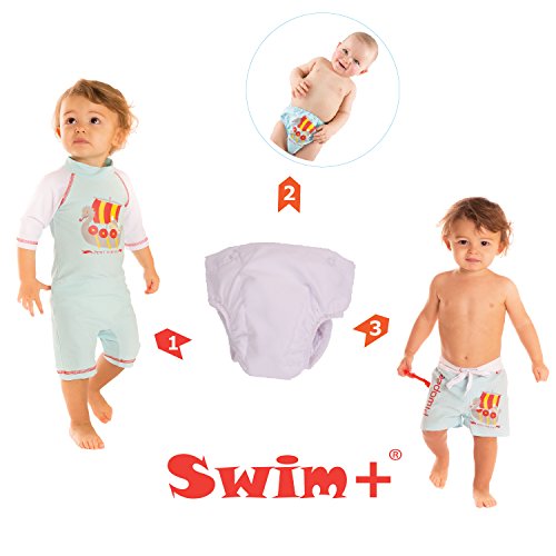 Piwapee - Pantaloncini con strato di Bagno Incastrabile Swim + Anti Fuga VERDE ANICE Blu Scoiattolo verde Vert anis/Bleu 8-11 KG (6-12M)