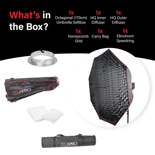 PIXAPRO 170 cm 67 "Studio Strobe Flash Ottagonale Ombrello Facile Aperto Softbox Elinchrom Montaggio Griglia A nido d'ape Morbido Delicato Diffuso Illuminazione Portatile Posizione (Elinchrom)