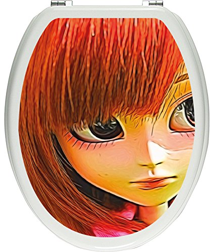 Pixxp RINT 3D WCS 2818 _ 32 x 40 con Delicato Bambolina Pullip Flash su Prato Estivo Verde Come Materiale Coperchio Adesivi, WC Coperchio WC, gläzendes, 40 x 32 cm, Multicolore