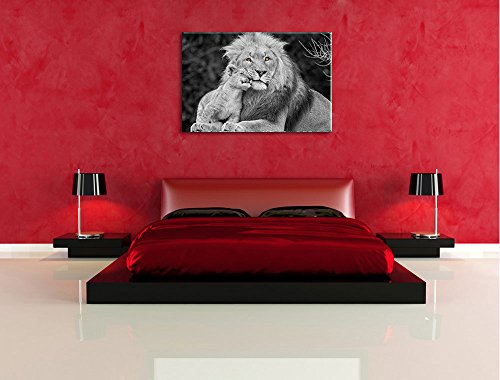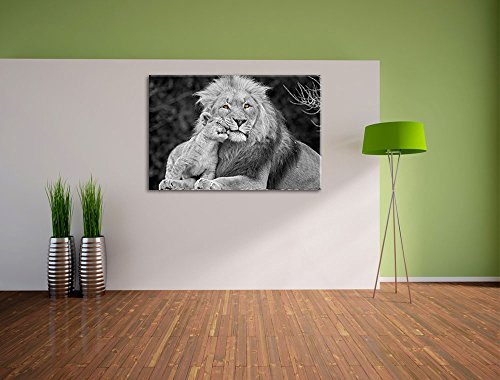 Pixxprint Bella Leone con Il Cub Stampa su Tela 120x80 cm Artistica murale